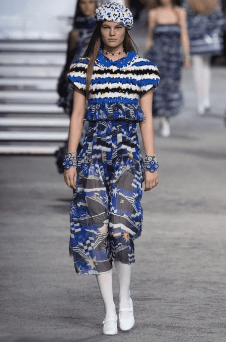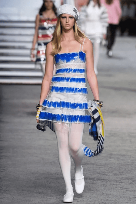 05-16 阅读(566)法国奢侈品牌 Chanel(香奈儿)在巴黎大皇宫发布了2019早春度假系列时装秀,专门仿造的一艘大型邮轮,带领着模特们共同启航。