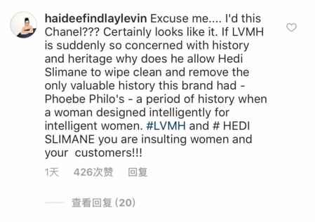 Insult Women这种评论也其实也不算是空穴来风吧,因为Phoebe的粉丝认为她的设计把女人从Skinny的服饰中解放出来,树立了精英女性的形象。而Hedi一贯的设计风格都是消瘦,甚至有一点病态的,这和Phoebe时期的CELINE太不一样了。