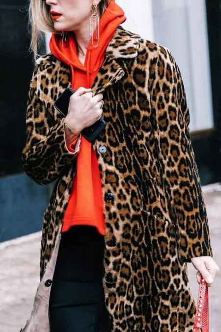橙色和红色调就更放大豹纹的性感气质,搭配这种亮色卫衣也很时髦~当然咯,紫色和粉色也是豹纹的好cp哦,可以用豹纹元素小面积点缀,平衡粉色调的柔美,增添一点霸气。