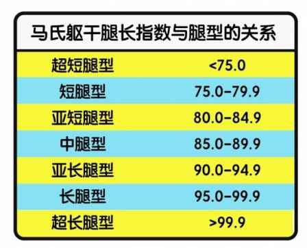 多长的腿才算大长腿,?最后点题再放一遍马氏指数与腿长的关系图,