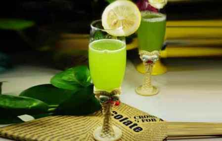 制作方法: 苦瓜洗干净,切开,去籽切大块;菠萝去皮,切成大块;青苹果洗干净,切开去籽切大块;将苦瓜、菠萝、青苹果、一起放入果汁机中、加一杯矿泉水粉碎榨汁、倒出淋上蜂蜜搅拌均匀、倒入杯中即可饮用。