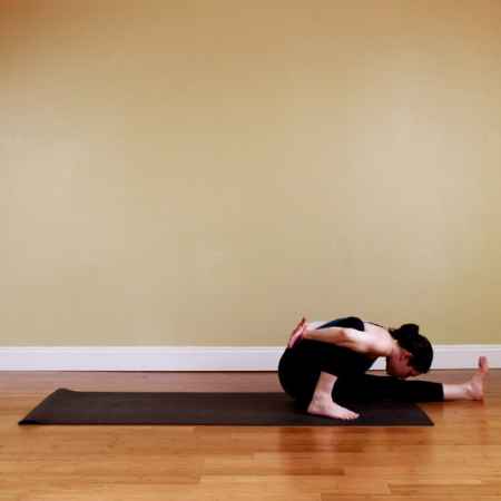 这个单腿前屈伸展式的变体非常有**性,特别是对小腿肌肉结实的人来说,因为他们有紧实的腿部、**和韧带,所以这个动作尤其适合适合他们。