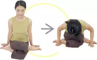 1:弯曲双腿呈盘腿姿势,右腿放在左腿之上,脚踝尽量贴近**。两手防在身体前侧,慢慢将上半身前倾并坚持片刻。