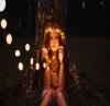 5、右脚稍稍向前弯曲,左脚伸直,上身向右侧弯腰,左手举起,右手垂下放在**,眼忘右下方。