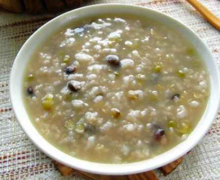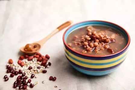 做法:先将红豆和绿豆浸泡一个小时,然后洗净。再把所有的材料都放进锅里,加入1L的水后开始煮,直到豆煮烂为止。煮好后直接把所有材料一起吃下即可。