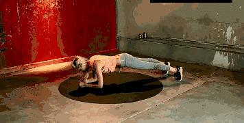 双臂曲肘90度撑在瑜伽垫上,双腿并拢伸直,且脚尖撑住地面,使身体呈一条直线,保持背部挺直,收紧腹部,然后将**微微向前抬高,再放低。此动作反复进行1分钟。