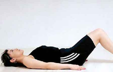 保持平躺,再用腹部的力量抬起上身,与地面成30~60度,在这个角度上停5秒钟,然后落下。重复此动作3组,每组15次。