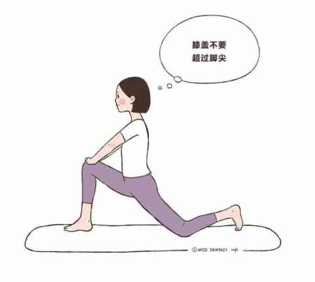 大弓箭步,前腿膝盖不要超过脚尖,后腿膝盖着地,重心前移,感受髋前部肌肉的拉伸,保持15-30秒,每次3-5组。这个动作对于长期伏案、容易腰痛的人来说,能起到很好的缓解作用。▼
