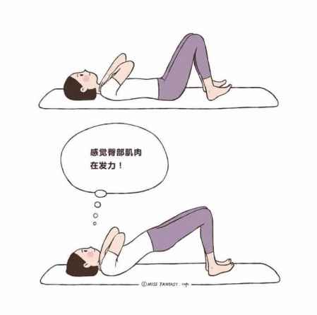 臀桥大家应该也不陌生,注意屈膝勾脚尖,将**上抬至肩髋膝成一条直线,感受**和**后群肌肉的**。每组16个,重复 3-4组。注意放下时要慢放,**不要完全贴于地面。▼