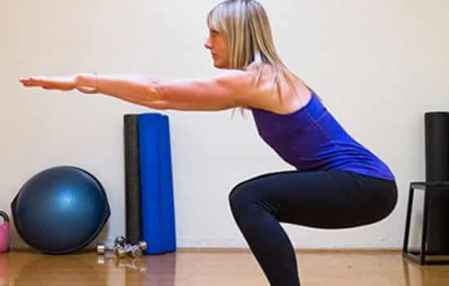 3、如果腿部力量薄弱或膝关节有损伤,可以蹲到60度即可。最低幅度**不要超过地面水平线呼气抬起。