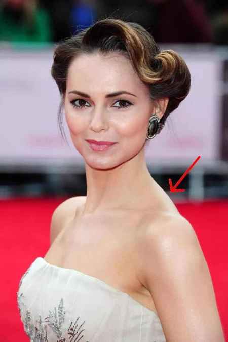 肩膀厚的张雨绮,也有一点点富贵包,脖子下面那里有一块厚厚的肉。刘诗诗这张照片和她角度一样,但是完全没有包,对比起来是不是很明显?▼