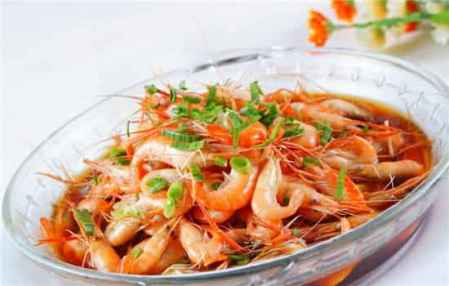 做法:将虾放进开水中,然后放盐、酒和姜,当虾完全变色后捞起即可食用。