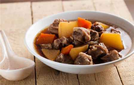 做法:先将水锅里的水烧开,胡萝卜牛肉同时入锅煮,加入酱油、八角、胡椒、砂糖,胡萝卜和牛肉完全熟透后,即可出锅。