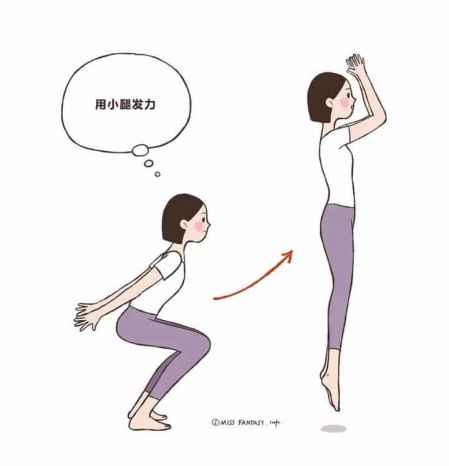 可以通过原地纵跳的动作来完成,注意运用小腿发力,落地时膝盖不要打直,稍微弯曲。▼