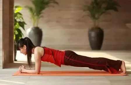 趴在瑜伽垫子上,双手放到**双侧,脚尖着地,使劲撑起家体。将气力平均地分布在全部手掌上,收紧胸、背、腹、**的肌肉,使身材成为一条直线。