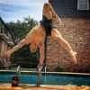 3、下斜俯卧撑——两脚放在长凳上支撑,手置于地上。下降身体至胸几乎触地后推起。这种练法主要针对胸肌上部与肩肌前部。也可以用健身球代替来增加身躯干肌肉的参与。