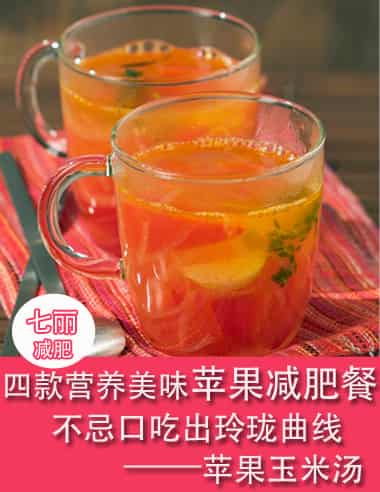你还在为减不了肥,忌不了口而烦恼吗?既然无法节食无法忌口,那么就必须找到一个适合自己的减肥方法,否则再不减肥就老了。面对市面上形形**的减肥方法,到底什么方法最不痛苦又能达到减肥效果呢?下面为大家介绍四款营养美味的苹果减肥餐,巧妙的借助苹果里的纤维达到纤体效果。换着**的吃苹果餐,不会觉得苦闷了,反而还会让人羡慕**减肥餐是如此美味呢!