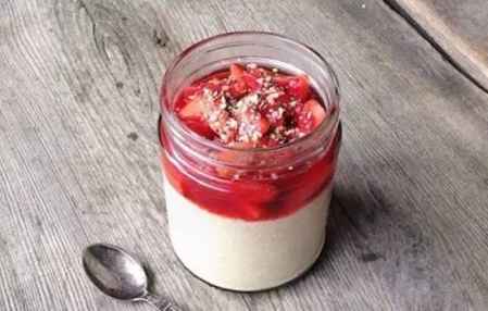 做法:马铃薯削皮切半,煮熟20分钟后凉放,与猕猴桃、苹果、香梨一起切丁;将所有水果和酸奶、美乃滋拌在一起;小玻璃瓶抹油,把材料倒入;抹平压实后放进冷冻库,食用时倒在盘中,淋下百香果果汁,再以草莓、猕猴桃装饰。