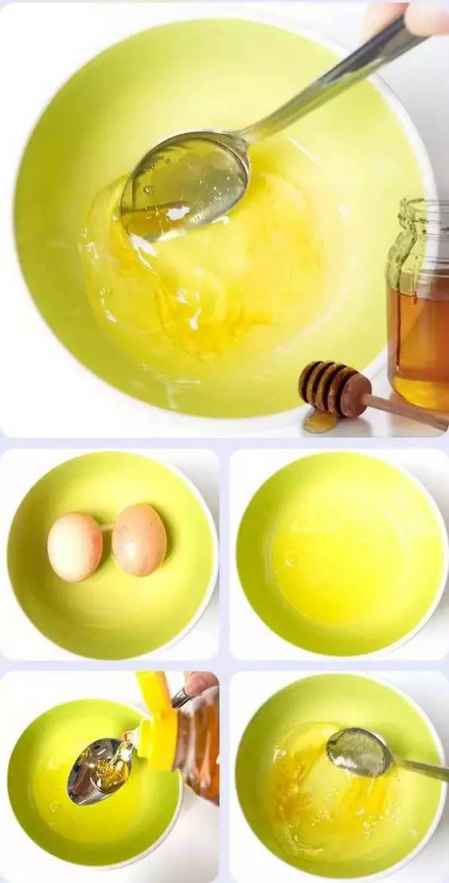 用一个鸡蛋,留下蛋清。加入两勺蜂蜜,再搅拌均匀。