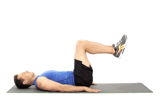 躺卧在地上,手臂伸直,放在身旁,手掌扶着地面,双腿屈膝并拢,离开地面,小腿与**、**与上身各成90度。