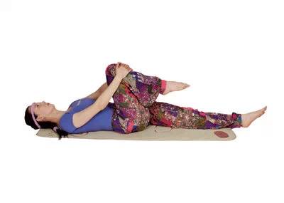 吸气,曲右腿,双手抱住。持续6秒。