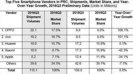 IDC 近日发布了中国智能手机市场的最新季度报告,其中显示 OPPO 高居榜首,原本排在第一的华为被挤到了第三。不变的是,苹果仍然排在第五位。