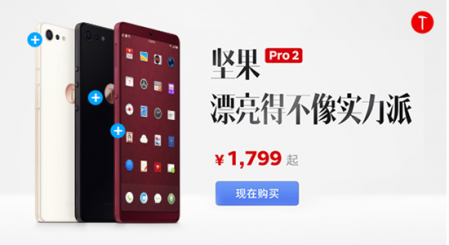 坚果Pro 2共有碳黑色(细**版)、酒红色和浅金色三个不同配色版本,存储方面共分为4GB+32GB、4GB+64GB、6GB+64GB、6GB+128GB、6GB+256GB五个不同存储版本,售价分别为1799元/1999元/2299元/2**9元/3299元。