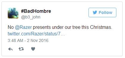 不过,雷蛇万万没想到自己的一句调侃竟然找来网友的愤怒,有人在回复中表示“真不理解你们是怎么想的,这样做根本没朋友。”“今年圣诞节我们不会用雷蛇的产品作为圣诞树下的礼物。”