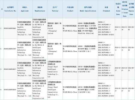从此次国家质量认证中心最新公布的信息来看,乐视旗下已经有一款型号为LE X950的新机获得了3C认证,由旭硕科技(重庆)有限公司生产,所配的充电器有两款,分别为EQ-24BCN和EV-25BCN。其中,前者为乐视旗舰机型专用,支持24W充电输出,而后者则似乎是尚未发布的新款型号,支持5Vdc/5.0A; 8Vdc/3.0A充电输出,预计充电速度将具备当前的顶级水准。