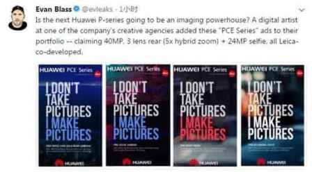 近日,爆料大神@evleaks送出了四张有趣的华为海报,这些海报都被标上了“I don't take pictures, I make pictures”的字样,翻译过来就是,我们从不拍照,我们只制造照片。而这些海报都指向华为新的PCE系列,目前还不知道,这是一个新的手机型号,还是P系的改版。