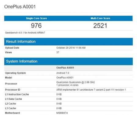 10-31 阅读(518)近日在测试网站GeekBench上面竟然出现了运行Android 7.0的一加手机,看来一加手机在Android 7.0系统的适配要超前不少其他国内厂商,或许一加手机的用户将会最早品尝到Android 7.0系统。