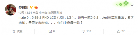 所以,Mate 9是不会是曲面屏版本的,而且目前也没有消息显示LG或者三星推出过5.9英寸的曲面屏。