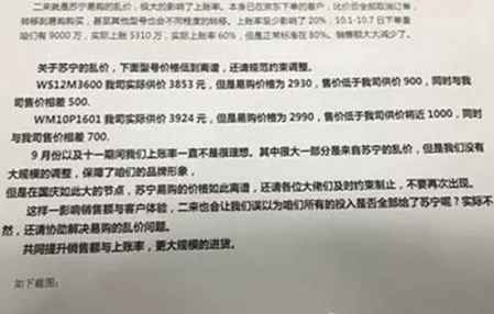 **向西门子投诉的内容显示,苏宁易购的超低价格已经开始影响**的销售,“极大地影响了上账率”。“9月份以及十一期间上账率一直不是很理想,很大一部分来自苏宁的乱价,苏宁易购的价格如此离谱,还请各位大佬们及时约束制止,不要再次出现”。