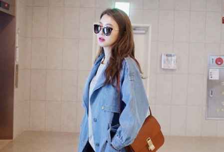 牛仔材料设计而成的风衣外套,简单宽松的版型,修饰出漂亮的身型,看着显瘦也时尚,过膝的长度,搭配黑色皮革长裤,张扬野性风,白色T恤衫、黑色高跟鞋,都是最基本的单品,与风衣相辅相乘,很有FEEL的搭配。