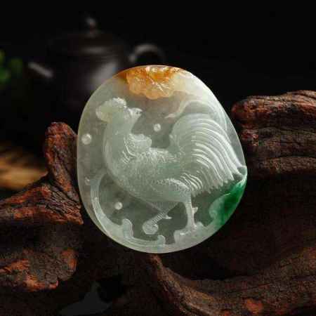 鸡,十二生肖系列中排行第十,有积极向上的精神,喜欢它的人不胜枚举。古时计时器尚未发明,早晨的鸡鸣一声就代表着新的一天即将到来,马上就会走过黑夜迎来光明。这就好比在事业中不得志的人,遇到好机遇就能一扫往日怨气,凭借才能取得事业上的成功。我们也常用“闻鸡起舞”来鼓励人们,所以翡翠鸡寓意积极上进、踏实肯干。
