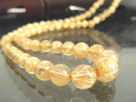 质地佳而少见的金发晶。极旺财运,加强自身气势,避邪化煞,有助于改善肠胃、肝胆等病症,其能量比其它水晶更为强大。 金发晶又有人称为维纳斯发晶,因为其金色的发晶酷似维纳斯一头柔软的金发而得名。是一种权威水晶,极具权势象征,因为它的气场能量极强,除了能辟邪外,还可可增强人体生物气场,增加胆识,实为进取心强烈,期望做大事者不可缺少的开运宝石。金发晶被认为能招财聚气. 正财偏财都招,磁场特强!(其中所含的发晶矿物元素是呈针状的,也因这些针状矿物元素增加了原有水晶的振荡频率,因此其磁场是水晶中之最。)金发晶的功能: 代表刚毅、果断,勇往直前,坚韧不拔的能量。佩带能提升胆识,增加果断能力。同时发晶可助优柔寡断的人较有魄力,是想要有担当和期望做大事业者不可缺少的水晶! 同时金发晶还有避邪。