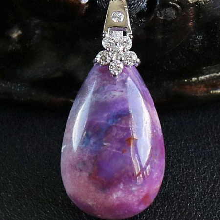 舒俱来石(Sugilite),为1960年代一位日本地质学家发现的新种类矿石,目前产地仅有南非、日本、加拿大和美国。其中美国是最大出口国,这两年因南非限制出口,价格有所攀升。可谓稀有种类宝石,又称南非国宝。最为上乘的舒俱来为红紫色系中的樱花色和皇家紫,纯正的紫色是舒俱来最经典颜色,而樱花色舒俱来市价最高、最光彩夺目,又以半透明和透明的樱花粉色最为罕见。以南非产皇家紫为代表,色艳均匀而油润,矿杂棉裂、石纹越少越好。美国、日本樱花体为多,以少见的桃红色为最。