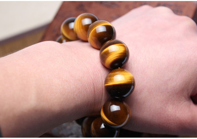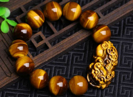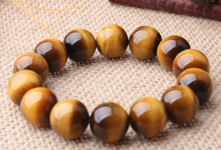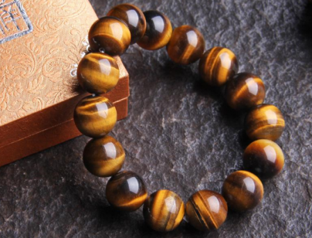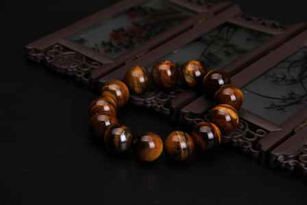 即最常见的“虎睛石”或“虎眼石”,虎睛石呈脉状或大小不一的透镜体产于破碎带中部或两侧,矿石呈细粒斑杂状结构或纤维状结构,块状构造,蓝石棉分布呈纵、横、斜及簇状蓝石棉纤维,方向各异,杂色分布。由于后期的褐铁矿化,致使虎睛石呈现金**或黄褐色,强丝绢光泽或金刚光泽,微透明或半透明,硬度7度以上,具有较强的猫眼效应,形成带状“活光”或“勒光”。黄虎眼石如同猫眼般霸气犀利的眼神,发散出璀璨的光芒,使人增添勇气与信心,勇敢的去奋斗,创造更多的财富。也有人称虎眼石为旺夫石,为自己的老公带来好运与财运。尊贵霸气的虎眼石手链反射出如猫眼般的璀璨光芒,激发出勇气,带来信心,坚定信念,使人勇敢。