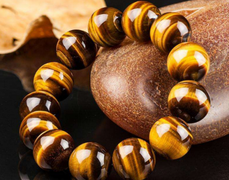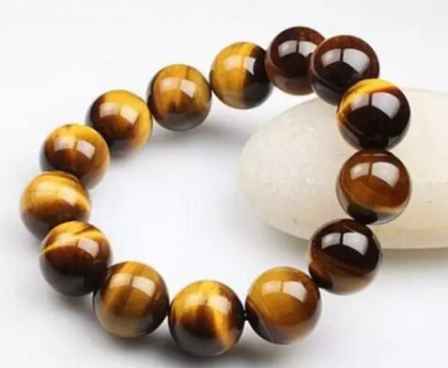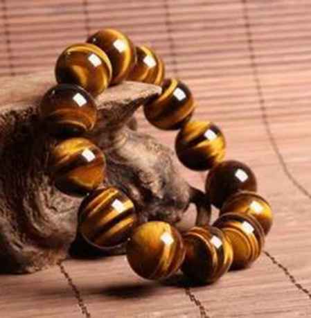 虎眼石是木变石的一种,观察下有木质结构,通俗来说就是像木头的石头。一般程褐**,之所以叫虎眼就是像老虎的眼睛,每颗珠子上经过光的角度不同都有条亮线,转动珠子,亮线也跟着动,不动就是假的。有可能是中等质量的,亮线可能少或没有,可能不在正中。