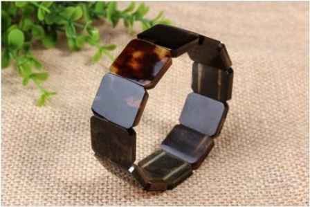 玳瑁呈黄褐色,半透明,光泽柔和,透润鲜明,有温暖感。玳瑁的鳞片内部有斑斓多姿的黑褐色斑纹,这些斑纹由无数大小不一的圆点聚集而成,点愈密,色愈深,斑纹清晰、美丽而通透,尤具浓淡晕染之变化和天然之趣;玳瑁在紫外线灯光下,其**和较透明的部位会发出微蓝色的荧光。