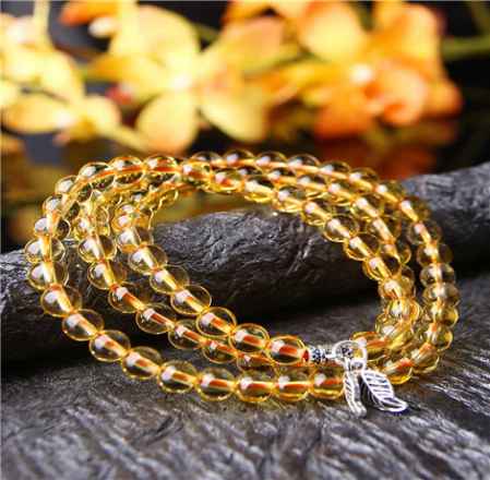 2、常见的人造黄水晶颜色均较黄,而且很多是大珠径圆珠(也有招财珠),其颜色黄的不自然,色泽暗淡,几乎感觉不到水晶的光泽,多数没有色差。