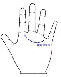 中指下方有散断金星环的人,无论男女都很重感情,一旦爱上某人便会深陷其中,可以为对方付出所有,被这类人爱上了会很幸福。