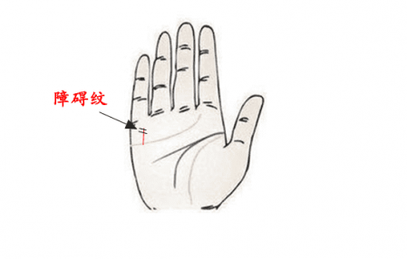 如果一个人的手相财运线上有横纹,而且是很多短小的横纹(如图),那这个横纹很可能是手相学中说的障碍纹。拥有这种手相的人,天生缺乏安全感,脾气比较暴躁,总会因为一点小事件就爆发不好的情绪。建议一定要及时改正和控制好自己的脾气,否则对**事业运,财运影响很大。