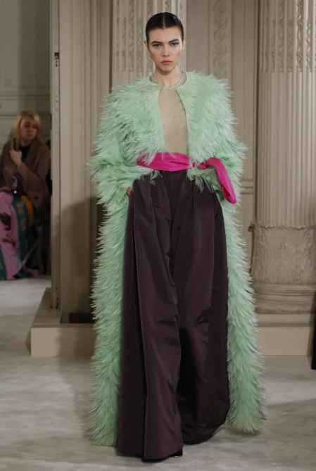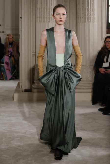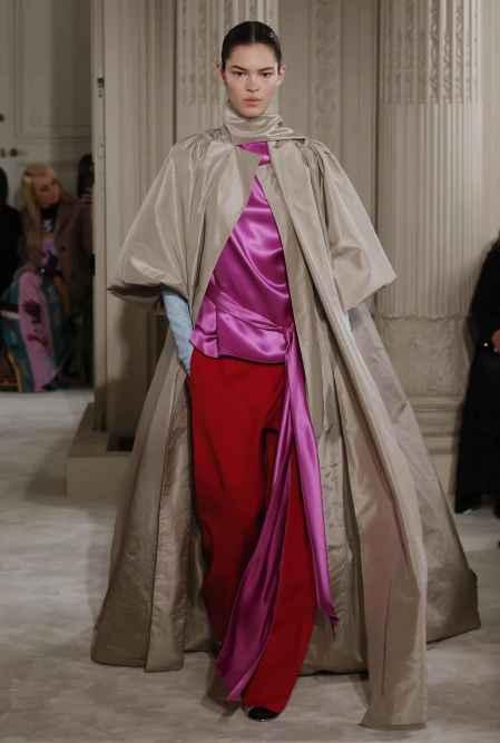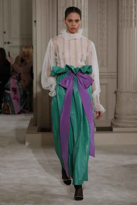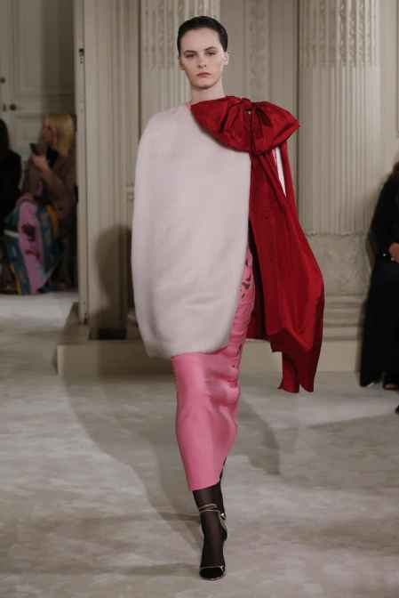 valentino2018春夏系列除了以往常出现的仙**的时装之外,更多的在“玩”色彩,利用了春夏季最常见的颜色,例如**、紫色、红色、绿色、粉色**,尤其是在色彩上利用大面积的撞色和配色,形成一种视觉冲击力,通过色彩的搭配来提升高级感。除了色彩配色的运用,同样在剪裁上更是运用歌剧的造型、蝴蝶结,来体现女性的魅力,仿佛在参加一场高级定制的舞会。