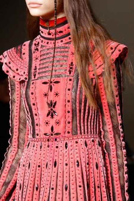裸露的肌肤在这次的 Valentino 秀不是重点,大部份的造型都有著高领、长袖或者五分袖的设计,附上 A-line 的裙摆和荷叶边,展露浪漫和华丽气度。