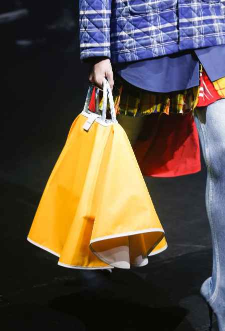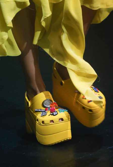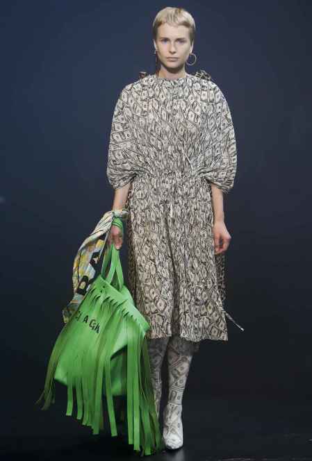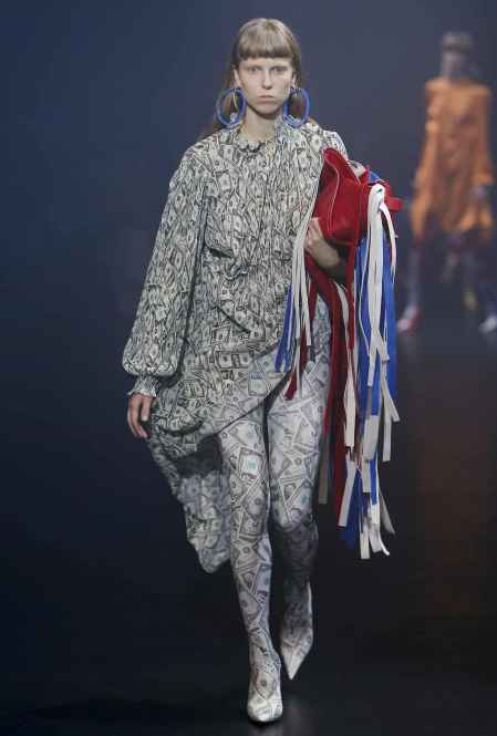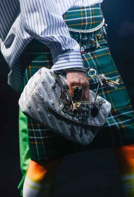 2018春夏系列更多的是以“叠穿”来作为解构全新的诠释,将先锋的设计理念和商业作为结合。这一系列带着一种不良品味的诱惑,钞票的印花和类似于屏幕保护的风景成为了巴黎世家2018春夏系列的亮点所在。最有意思的要属于这一系列的包包和鞋子,例如给包包穿上“雨衣”,与Cros联名的超厚松糕鞋底洞洞鞋**,不得不说Balenciaga的设计理念还真是让人捉摸不透。