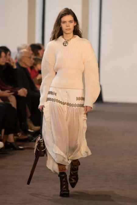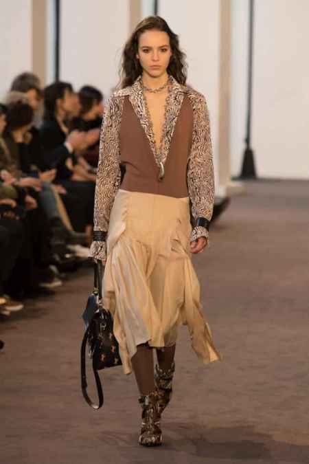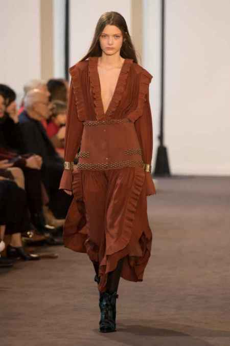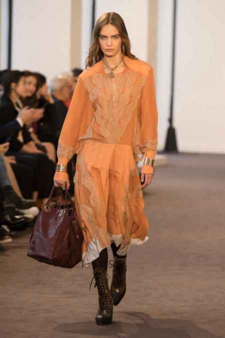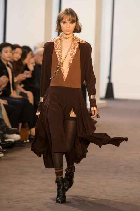 Natacha Ramsay-Levi 以70 年代女演员Anjelica Huston 、 Sissy Spacek 、 Isabelle Huppert 与Stéphane Audran 作爲缪思,将存在于那个时代的复古情愫运用至实际设计之中,同时也不忘继续深入探索Chloé 经典的波西米亚风格,而在强调**唯美风情的同时,也将都会时髦气质融入,使得著装看起来既浪漫又富张力。