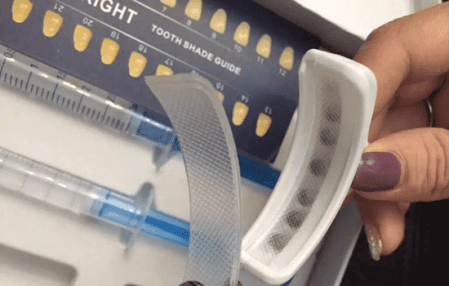 拿出**牙齿冷光美白仪中的硅胶片和牙托,硅胶片是套在冷光美白仪的牙托上使用的。