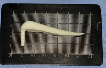 为了安全进行鼻头缩小手术,首先应该取出鼻子假体。假体取出后,可以看到鼻背和鼻头部皮肤由于长期受压变薄,尤其是鼻尖皮肤转折处承受的压力更大,皮肤已十分菲薄,若不及时处理皮肤会破溃。