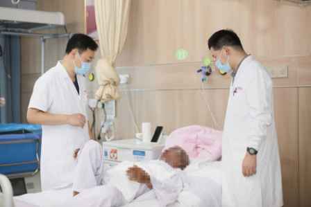 整形医院烧伤与创面修复科主任苏映军(左)主治医师付德丰(右)问询患者恢复情况